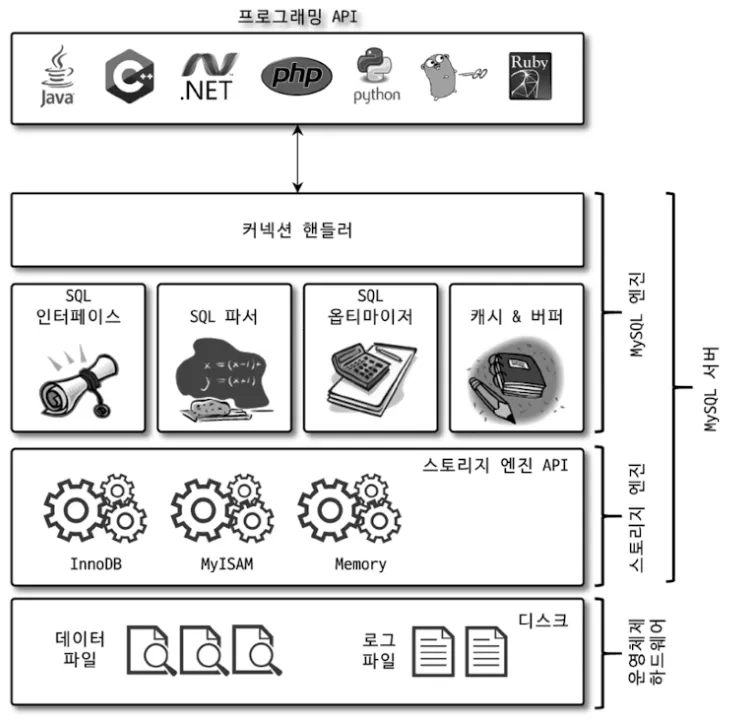 🔽 참고 MySQL은 구조적으로 MySQL 엔진과 스토리지 엔진의 두 계층으로 구성되어 있다. 아래 그림에서 볼 수 있듯이, MySQL 엔진 락은 비교적 레거시에 가까운 개념이며, 현대 MySQL에서는 대부분의 동시성 제어가 InnoDB 스토리지 엔진의 락을 중심으로 이루어진다.