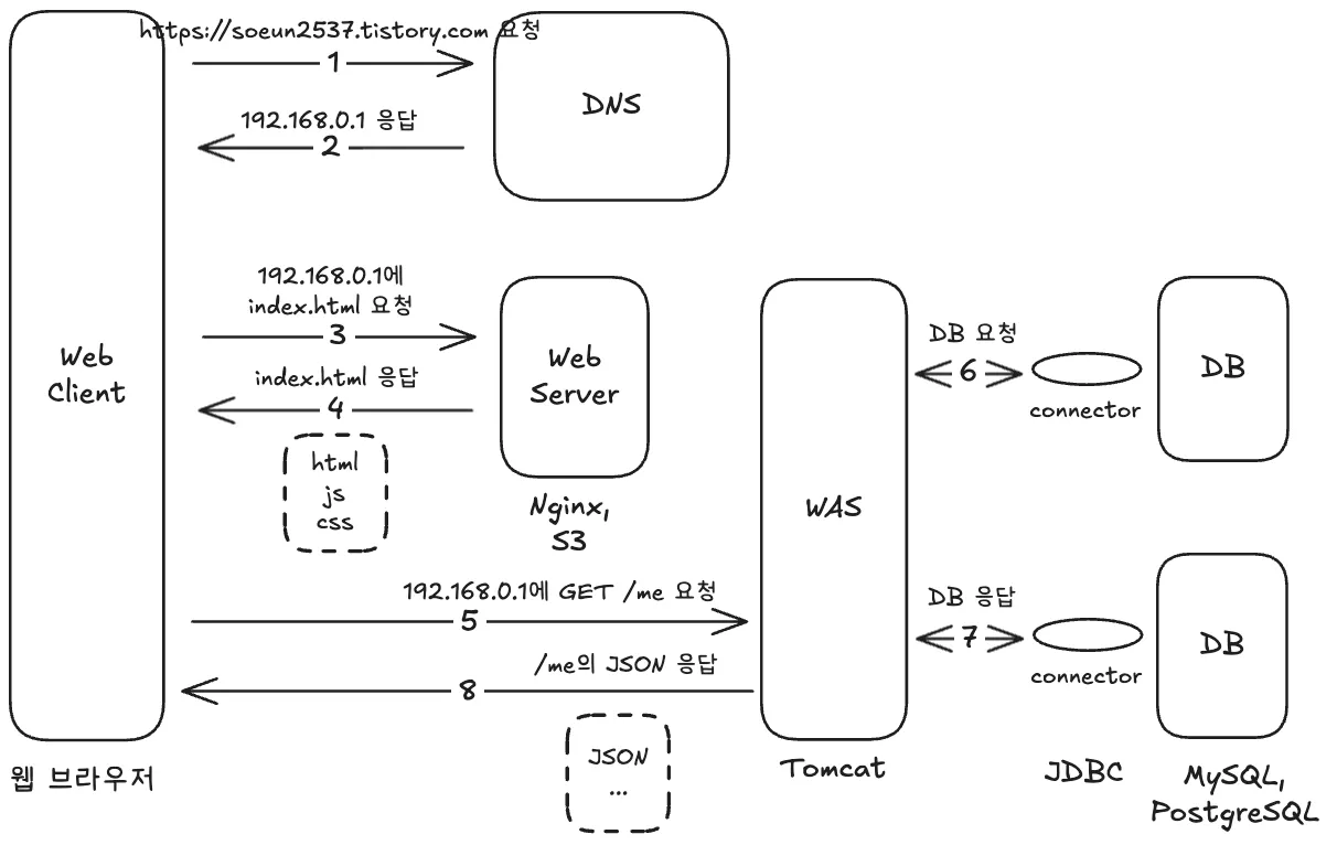- ์๋ฒ(WAS)๊ฐ ์์ฒญ์ ๋ฐ๋๋ค.