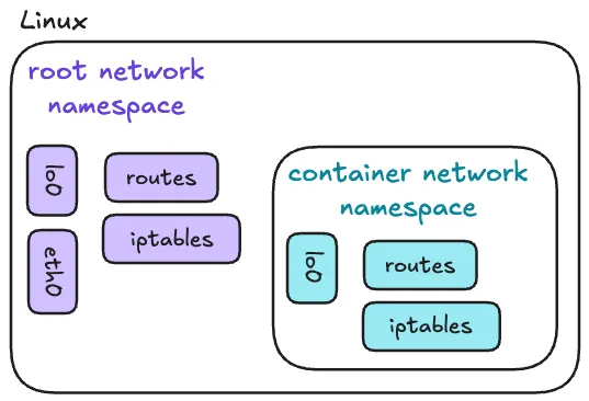 Network Namespace가 분리되면, 각 네임스페이스는 완전히 독립된 네트워크 스택을 가진다.